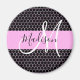 Glam Black Metallic Pink Honeycomb Monogram Name Magnet