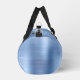 This personalized duffel bag features a monogram and first name in modern black and white script on a glam blue faux brushed metal background.
