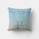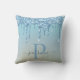 Glam Blue Glitter Drips Elegant Monogram Throw Pillow