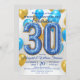 The centerpiece features oversized, dazzling '30' numbers textured with a detailed blue glitter pattern and framed in shimmering gold accents, ensuring maximum visual impact.