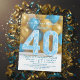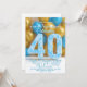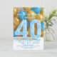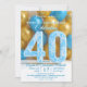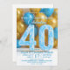Glam Blue Gold Balloons 40th Wedding Anniversary Invitation