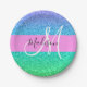Glam Blue Green Glitter Sparkle Gradient Monogram Paper Plate