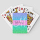 Girly and glam blue, green, aqua and turquoise mermaid glitter sparkles gradient monogram name and initial playing cards. Your custom name and monogram are written in an elegant hand lettered script with a pink background. A perfect birthday or Christmas gift!
