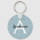 Girly and glam blue silver glitter sparkles monogram name and initial keychain. Personalize with your custom name in an elegant black script and your monogram initial in white. You can change the text colour and font style and size using the customize option.