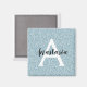 Girly and glam blue silver glitter sparkles monogram name and initial magnet. Personalize with your custom name in an elegant black script and your monogram initial in white. You can change the text colour and font style and size using the customize option.