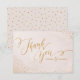 Glamour faux glitter rose gold hand lettering calligraphy thank you design and gold dots confetti on pastel blush watercolor background, pretty shimmer faux metallic rose gold glitter effect, modern, chic, elegant and classy, perfect for vintage wedding or spring wedding. Custom your own thank you card for your wedding!