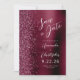 This elegant modern wedding save the date card features a burgundy brushed metal background decorated with faux diamond glitter. The customizable text combines white script and sans serif fonts. The reverse side repeats the burgundy brushed metal and glitter design.