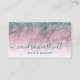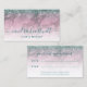 This elegant modern appointment card features a background image of burgundy marble, framed on the top by a teal blue faux glitter border. Personalize it with your name in teal handwriting-style script and your business information in sans serif font. A white gradient screen helps make the text pop. On the reverse, the words "your next appointment" appear in teal handwriting script, along with spaces for the date and time. Edit the italic text at the bottom with additional policies or information for your clients or customers.