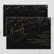 Glam Calligraphy Black Gold Confetti 90th Birthday Invitation