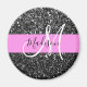 Glam Chic Pink Black Glitter Sparkle Name Monogram Magnet