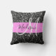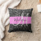 Glam Chic Pink Black Glitter Sparkle Name Monogram Throw Pillow
