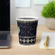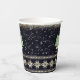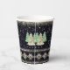A Nordic-inspired holiday pattern featuring green and metallic trees and snowflakes on a dark background. Folk motifs and subtle shimmer add festive flair to your party drinkware.