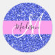 Glam Dark Blue Pink Glitter Sparkles Name Monogram Classic Round Sticker