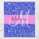 Glam Dark Blue Pink Glitter Sparkles Name Monogram Wine Label