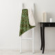 This elegant design features a pattern of emerald green and black leopard spots on a gold background.