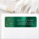 Le bord gauche de cette élégante étiquette d'adresse de retour faire-part de mariage moderne comporte une bordure en faux parties scintillant vert émeraude. Le texte personnalisable combine écriture blanche et polices de cuivre sur un arrière - plan en métal brossé vert émeraude.
