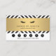 Coordinates with the Glam Eyelashes with Bold Pattern Business Card Template by 1201AM. A bold, black and white graphic pattern background fills this modern business card template. Black eyelashes along with your name or business name is set on a faux gold strip for a glamourous effect. Eye-catching and unique loyalty cards for eyelash extensions, makeup artists, lash bars, cosmetic companies and more. Customize the promotion for your own offering. © 1201AM CREATIVE