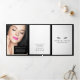 Black eyelashes along with your name or business name create a striking logo on this classic black and white 5x7 tri-fold brochure. Created for eyelash extensions salons, makeup artists, beauty specialists and more - these smaller sized brochures are perfect to display your price lists and menu of services. A great marketing piece to hand out to potential clients to quickly introduce your business. Please contact the designer for help with special typesetting or layout variations. Art and design © 1201AM Design Studio | www.1201am.com
