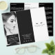 Black eyelashes along with your name or business name create a striking logo on this classic black and white tri-fold brochure. Created for eyelash extensions salons, makeup artists, beauty specialists and more - these brochures are perfect to display your price lists and menu of services. A great marketing piece to hand out to potential clients to quickly introduce your business. Please contact the designer for help with special typesetting or layout variations. Art and design © 1201AM Design Studio | www.1201am.com
