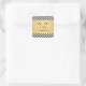 Coordinates with the Glam Eyelashes with Bold Pattern Business Card Template by 1201AM. A faux gold band is set on a black and white patterned background of these personalized stickers. A pair of black eyelashes is perfect branding for eyelash extensions, makeup artists, cosmetic companies, lash bars and more. Use these stickers to label your lash cleaner, beauty products, or to personalize your salon supplies. © 1201AM CREATIVE