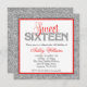 Glam Faux Glitter Silver Red Sweet 16 Invitation