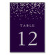 Glam Faux Silver Confetti on Deep Purple Table Number