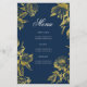 Glam Floral 50th Birthday Program Gold Navy Menu