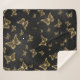 Glam black and gold butterflies in a seamless pattern. Modern luxury design with white sparkles.