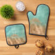 Glam Gold Aqua Glitz Glitter Oven Mitt & Pot Holder Set