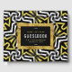 All events Guestbook in Bold geometric pattern in black and gold with splash of white. Gold trimmed black plaque on front cover with text you can customize. ★★★ Guestbooks suit for weddings, graduation, baby shower +more. Always, made with love ❤ by Webgrrl.biz
