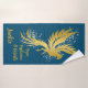 Elevate your bathroom with this luxurious towel set, featuring a striking gold phoenix against a sparkling silver glitter background. Each towel is personalized with a gold monogram, adding a touch of sophistication and uniqueness to your daily routine. The sleek blue backdrop enhances the dazzling design, while the plush, absorbent fabric ensures comfort and practicality. Perfect for infusing your bathroom with a blend of glamour and elegance, this towel set is a stylish and functional addition to your home.