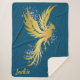 Wrap yourself in elegance with this large Sherpa blanket, adorned with a striking gold phoenix soaring against shimmering silver glitter. The personalized gold monogram adds a touch of sophistication and individuality, making this blanket not just a cozy essential but also a stylish statement piece. The soft Sherpa fabric ensures ultimate comfort while the sleek blue background provides a dramatic contrast, perfect for adding a touch of luxury and inspiration to your living space.
