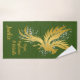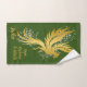 Elevate your bathroom with this luxurious towel set, featuring a striking gold phoenix against a sparkling silver glitter background. Each towel is personalized with a gold monogram, adding a touch of sophistication and uniqueness to your daily routine. The sleek green backdrop enhances the dazzling design, while the plush, absorbent fabric ensures comfort and practicality. Perfect for infusing your bathroom with a blend of glamour and elegance, this towel set is a stylish and functional addition to your home.
