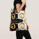 Black and white never looked better with an overlay pattern of gold curls with a gold foil look complete with your personalized name or monogram. Replace the sample name with your desired name or other text and you are all set. This tote makes a wonderful personalized gift.