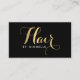 Glam Hairstylist Script Text Gold/Black Business Card