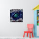 Mythical blue medieval gothic dragon eye with purple glam ink and fog.