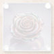 This coaster features a metallic rose on a purple gradient background. The rose has iridescent petals with a rose gold centre transitioning to iridescent shades of turquoise, pink and purple. The petals have a glossy, reflective surface that creates a mirror-like effect. The rose is on a reflective surface that creates a mirror image of the flower below it. The background transitions from a purple at the top to a lighter lavender at the bottom. The coaster is a square glass coaster. The glass coaster is dishwasher safe.