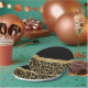 half black half leopard print gold glitter animal print paper plate, featuring a gold ribbon across the middle with white script text that you can personalize to fit your needs. These elegant and classy plates would be great for a woman's milestone birthday party or achievement party. They're very sleek and classy.