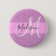 Glam and girly lilac metallic honeycomb bee pattern monogram name and initial button. Your custom name and monogram are written in an elegant black and white hand lettered script with a pink background. You can change the text colour and font style and size using the customize option.