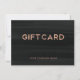 Ce certificat de carte cadeau de couleur noire, aux textures riches et élégantes, présente de l'or faux rose élégant, une typographie moderne minimaliste. Le dos contient beaucoup de place pour vous de customiser totalement avec votre magasin ou les informations de votre entreprise.