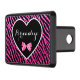 Glam Name Pink Black Zebra Glitter Heart With Bow Trailer Hitch Cover