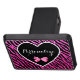 Add glitz and glam to your personal style with this hot pink and black hitch cover with trendy pink glitter zebra print stripes and a black heart where you can personalize by adding the name of any teen girly girl of fashion. This stylish animal pattern with a cute pink bow is sure to bring out the fashionista in anyone. Flat printed image, not actual glitter or ribbon. ©OhSoGirly