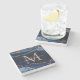 Glam Navy Blue Gold Agate Geode Glitter Monogram Stone Coaster