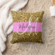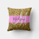 Glam Pink and Gold Glitter Sparkles Monogram Name Throw Pillow