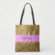 Glam Pink and Gold Glitter Sparkles Monogram Name Tote Bag