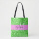 Glam Pink and Green Glitter Sparkles Monogram Name Tote Bag