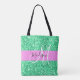 Glam Pink and Green Glitter Sparkles Monogram Name Tote Bag