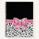 Glam Pink Bow Diamond Black Snow Leopard Notebook