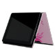 Elegant iPad 2/3/4 folio style case done in light gradient pink, with graphics of a hot pink flourish, across the bottom, and black, in the corners. Personalize the pink one letter monogram. Lovely way to protect your electronic device and look stylish too.