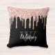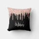 Glam Pink Glitter Drip Black Monogram Letter Throw Pillow